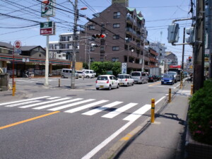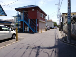 行幸道路を小田急相模原駅から相武台方面に”味の民芸”を左手に過ぎ”セブンイレブン”の前にある交差点を線路方向左手に曲がります。
